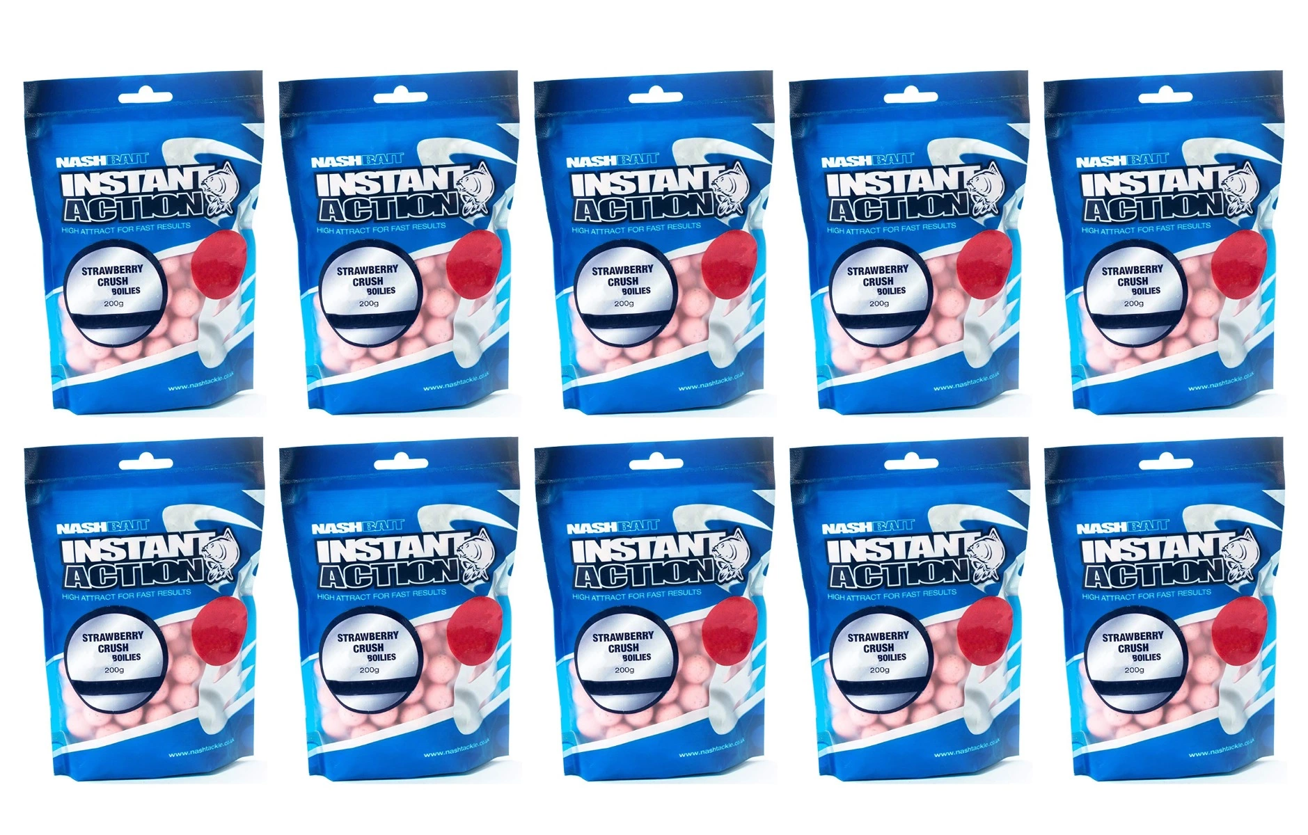 DefaultBrand 10 PACK | Nash Instant Action Strawberry Crush Boilies 15mm 200gr
