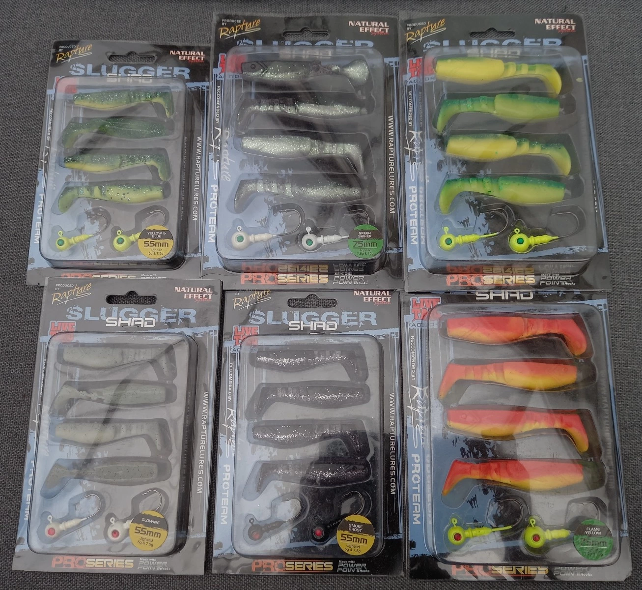 PAKKET BESTAANDE UIT ZES RAPTURE SLUGGER SHAD VERPAKKINGEN