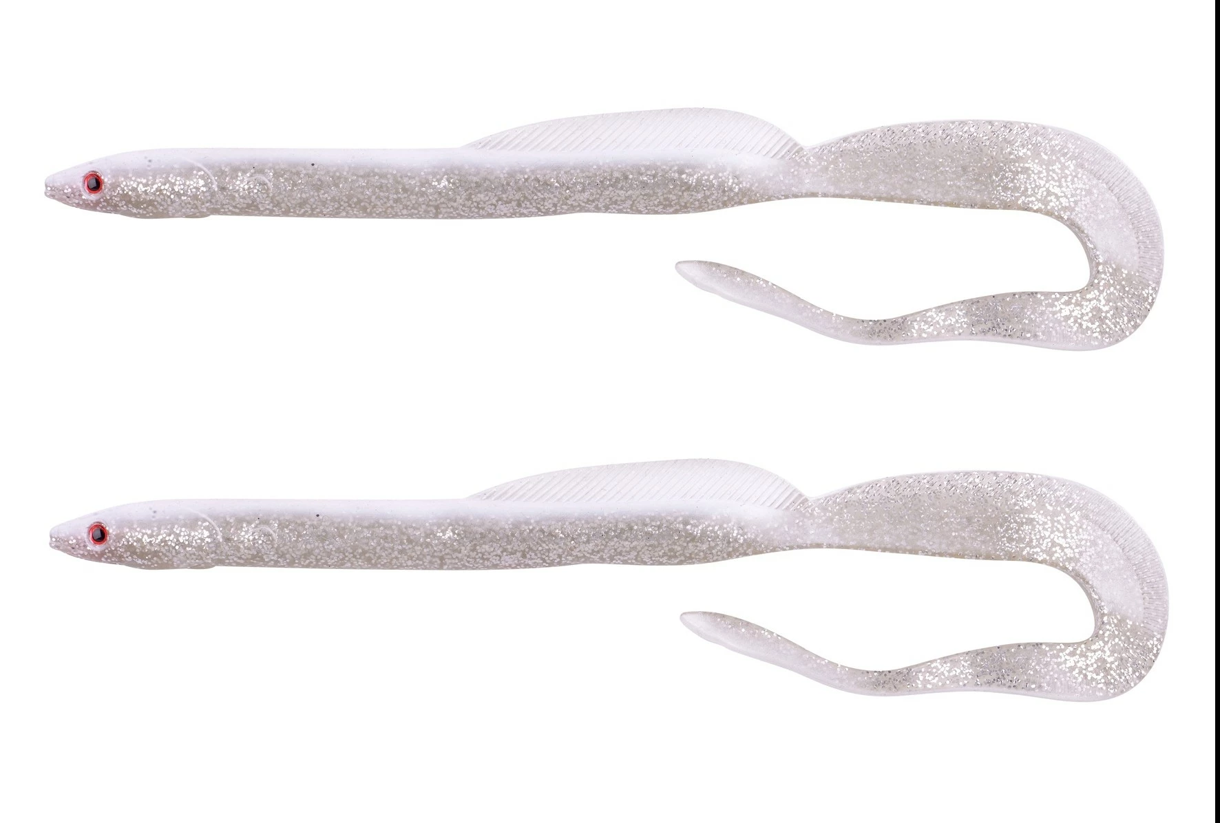 De Hyper Eel bezit een onovertroffen staartactie. Zelfs als dit kunstaas tergend langzaam gevist wordt creëert de curly tail een sterke werveling onder water. Deze wervelingen reiken ver en zijn ideaal om grote rovers er toe aan te zetten actief achter de prooivis aan te gaan.Lengte: 26.5cmKleur: White Back2 eels per verpakking!!
