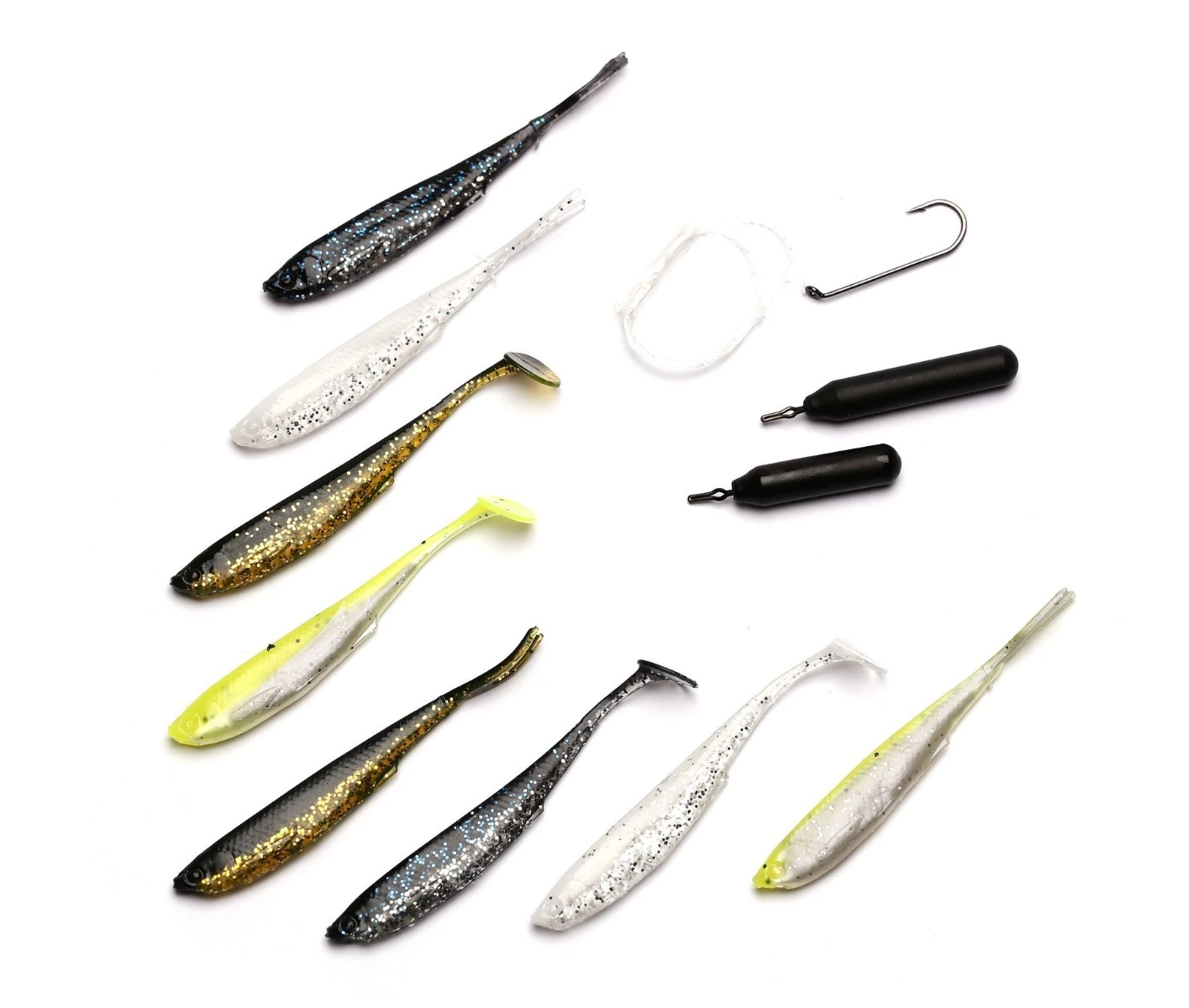Inhoud van deze kit:• 4 x 3D Fry V-Tail (6.5 cm)• 4 x 3D Fry Paddle Tail (6.5 cm)• 1 x Ready tied 0,26mm FC (100cm on hook #6)• 1 x Drop Shot Weight Cylinder S (5g)• 1 x Drop Shot Weight Cylinder M (7g)